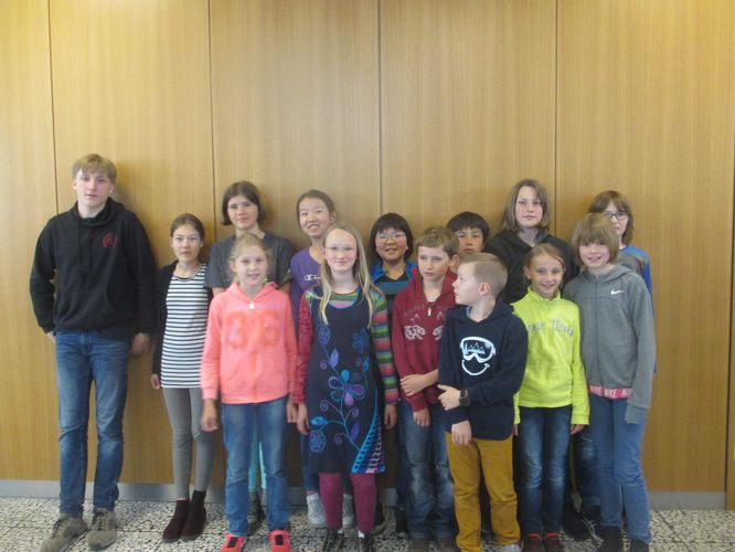 Klasse 5a: Hugo, Zixin, Lydia, Sirpa, Nicolas; Klasse 5b: ein Schüler; Klasse 5d: Marie, Ann-Sophi und ein weiterer Schüler; Klasse 6a: Julia, Kira