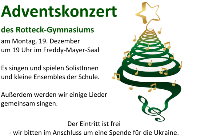 Es singen und spielen SolistInnen und kleine Ensembles der Schule. Außerdem werden wir einige Lieder gemeinsam singen. Der Eintritt ist frei - wir bitten im Anschluss um eine Spende für die Ukraine.
