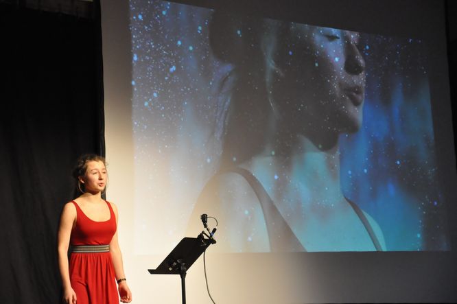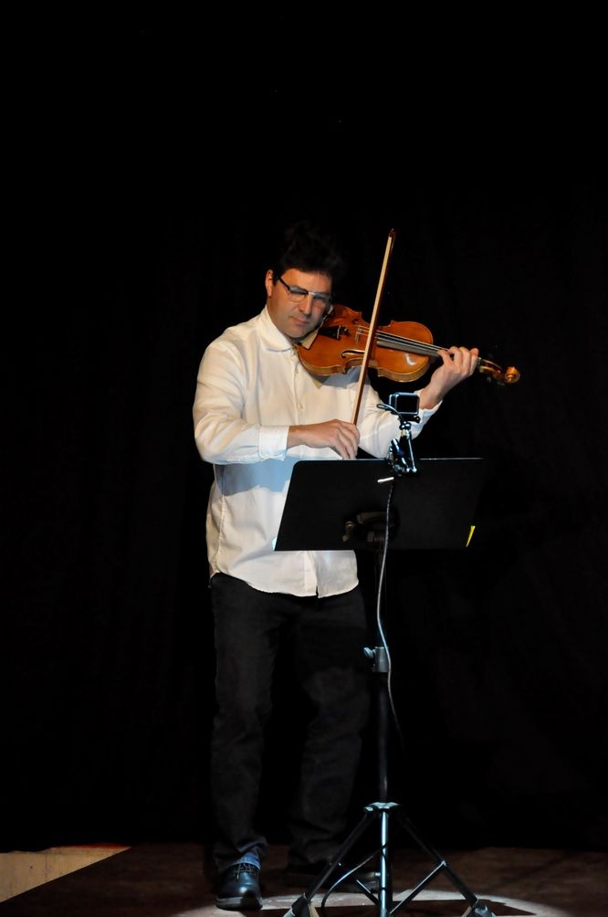 Nach und nach trudelten auch schon die ersten Menschen ein und schon kurze Zeit später füllte sich die Aula des Rottecks immer mehr, so dass unserem kleinen Programm nichts mehr im Wege stand. Es begann Ferdinand Martin mit einem Impromptu von Schubert auf dem Klavier. Es folgte Sabeth Neubourg, selbst Schülerin in unserem Musikkurs, mit drei selbstgesungenen Liedern auf Französisch und Italienisch, begleitet von Herrn Schlabach am Klavier. Anschließend gab uns Michael Dinnebier, Stimmführer der zweiten Geige im Symphonieorchester des SWR, ein kleines Interview und spielte hinterher mehrere Stücke für uns auf seiner Geige. Neben zwei Sätzen aus der E-Dur Partita von Johann Sebastian Bach, spielte er auch den ersten Satz aus der zweiten Solosonate von Eugène Ysaye. Während all diesen Live Acts waren andere Schüler von uns mit Kameras im Einsatz und filmten den jeweils musizierenden. Dieses Bild wurde gleichzeitig auf die große Leinwand hinter der Bühne projiziert und bewirkte somit eine ganz andere aber auch schöne Atmosphäre. Nun war die Lounge Party im vollen Gange, die Menschen unterhielten sich, tranken Champagner und hörten der klassischen Musik zu. Der Stimmung der Gäste zu urteilen, waren alle zufrieden und genossen die nicht allzu typische Party. Gegen späten Abend klang der Abend dann nach und nach aus und unser Musikkurs begann langsam mit dem Abbau, mit Hilfe einiger anderen Schülerinnen und Schüler, die gar nicht mehr gehen wollten.
