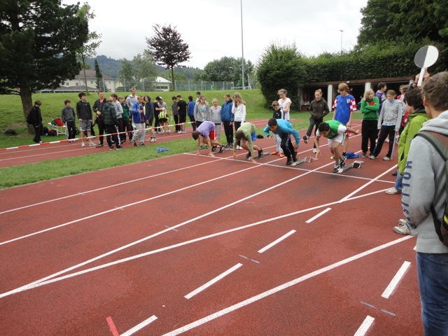 Bei teils grenzwertigen Wetterbedingungen (starker Wind, immer wieder leichter Regenschauer) startete das Rotteck um 8.30 Uhr in die Leichtathletik-Wettkämpfe. Jede Schülerin/jeder Schüler hatte einen Vierkampf zu absolvieren, die Disziplinen ergaben sich aus dem dazugehörigen Jahrgang. Besonders die Unterstufenschüler/innen waren mit großer Begeisterung dabei und gaben sich besonders viel Mühe, um Bestleistungen zu erzielen. Aufgrund des stark einsetzenden Regens um die Mittagszeit musste der geplante Staffellauf leider abgesagt werden. Sicherlich wäre dies, wie bereits zwei Schuljahre zuvor, ein Höhepunkt für alle Schüler/innen gewesen.