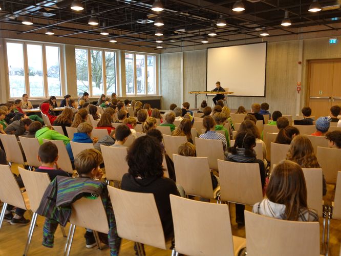 In der vorweihnachtlichen Zeit fand am 10. Dezember in dem neu sanierten Veranstaltungssaal des Rotteck-Gymnasiums der Vorlesewettbewerb der 6. Klassen statt.
