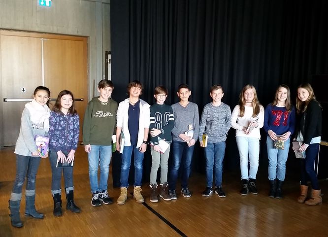 Gebannt lauschten 140 Schülerinnen und Schüler den fesselnden und witzigen Texten. Unsere Vorleser gaben ihr Bestes und machten es der sechsköpfige Jury aus Schülern und Lehrern wirklich schwer, eine Entscheidung zu treffen. Am Schluss stand dann jedoch der Sieger fest: