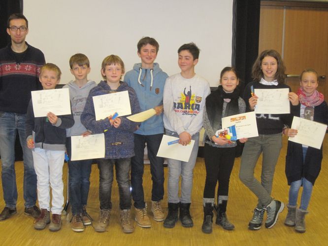 Aus jeder Klasse sind zwei Klassensieger angetreten, um einen bekannten und anschließend einen unbekannten Text auf Französisch vorzulesen. Die Nervosität war verständlicherweise groß, aber die jeweiligen Klassen haben ihre Teilnehmer mit lautem Applaus unterstützt. Die Jury, die aus den Lehrerinnen der Klassen und dem französischen Sprachassistenten bestand, war beeindruckt von der Leseleistung der Kinder, die ja erst ein halbes Jahr Französischunterricht haben! Der Vorsprung der Gewinnerin Stephania Brunner war knapp, aber eindeutig. Ihr und allen anderen Teilnehmerinnen und Teilnehmern gebührt große Anerkennung für ihre Vorbereitung und ihr Können!
